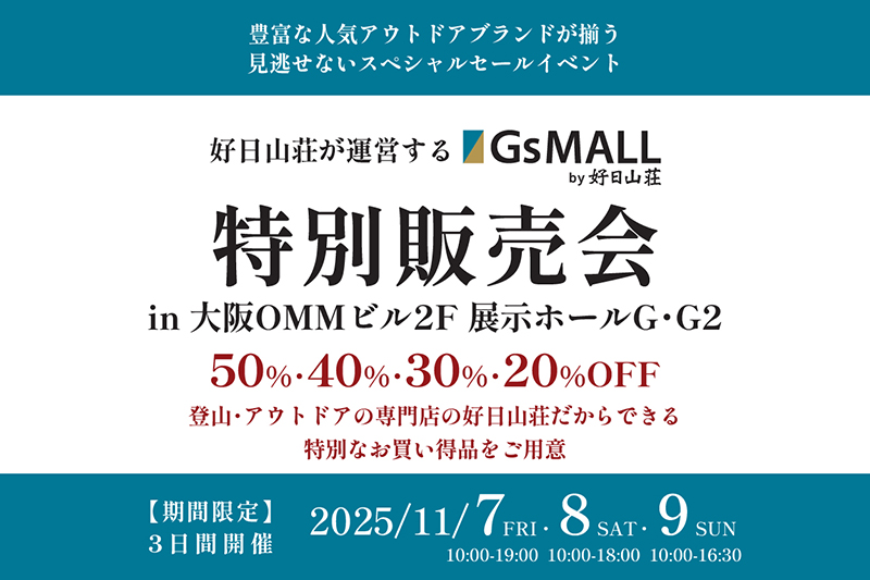 登山・アウトドアを楽しむ全ての方に、日頃のご愛顧に感謝を込めて好日山荘が運営する「GsMALL特別販売会in大阪OMMビル」を開催します。