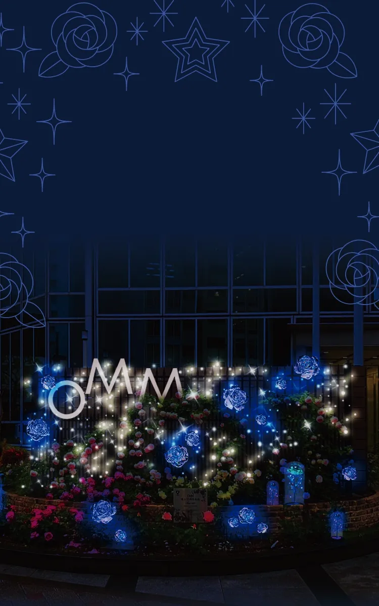 55周年を記念し薔薇園としてリニューアルしたOMM1階エントランスにて